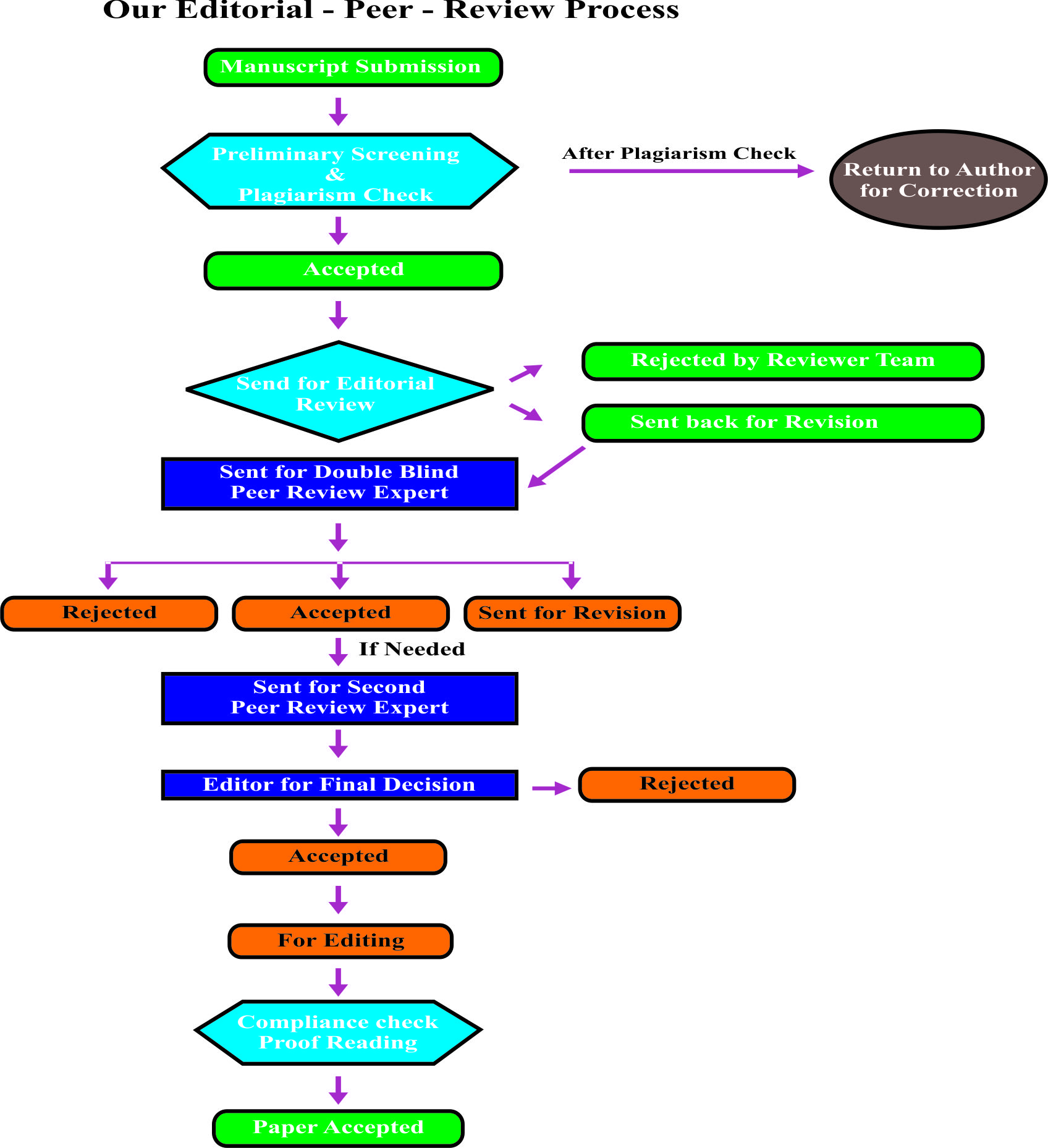 During this process, revised manuscript sent to editing team and if it is accepted then the editing of manuscript will be done and same will convey to the Author. If there is any compliance Issue during the Process then it will send it to Research and Development team for the final approval.